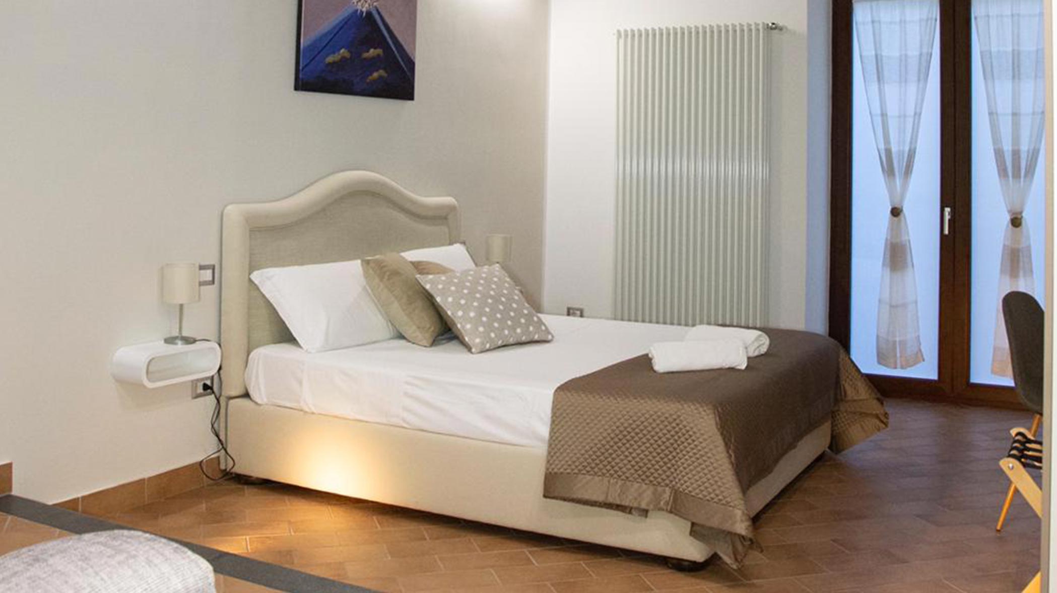 La stanza aria, luminosa ed elegante ideale per viaggiatori più esigenti o per chi vuole concedersi notti indimenticabile all’ombra del Vesuvio.