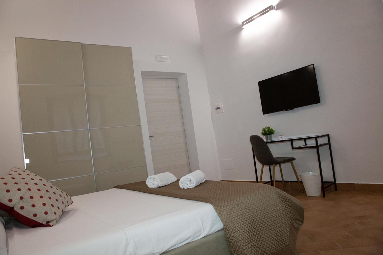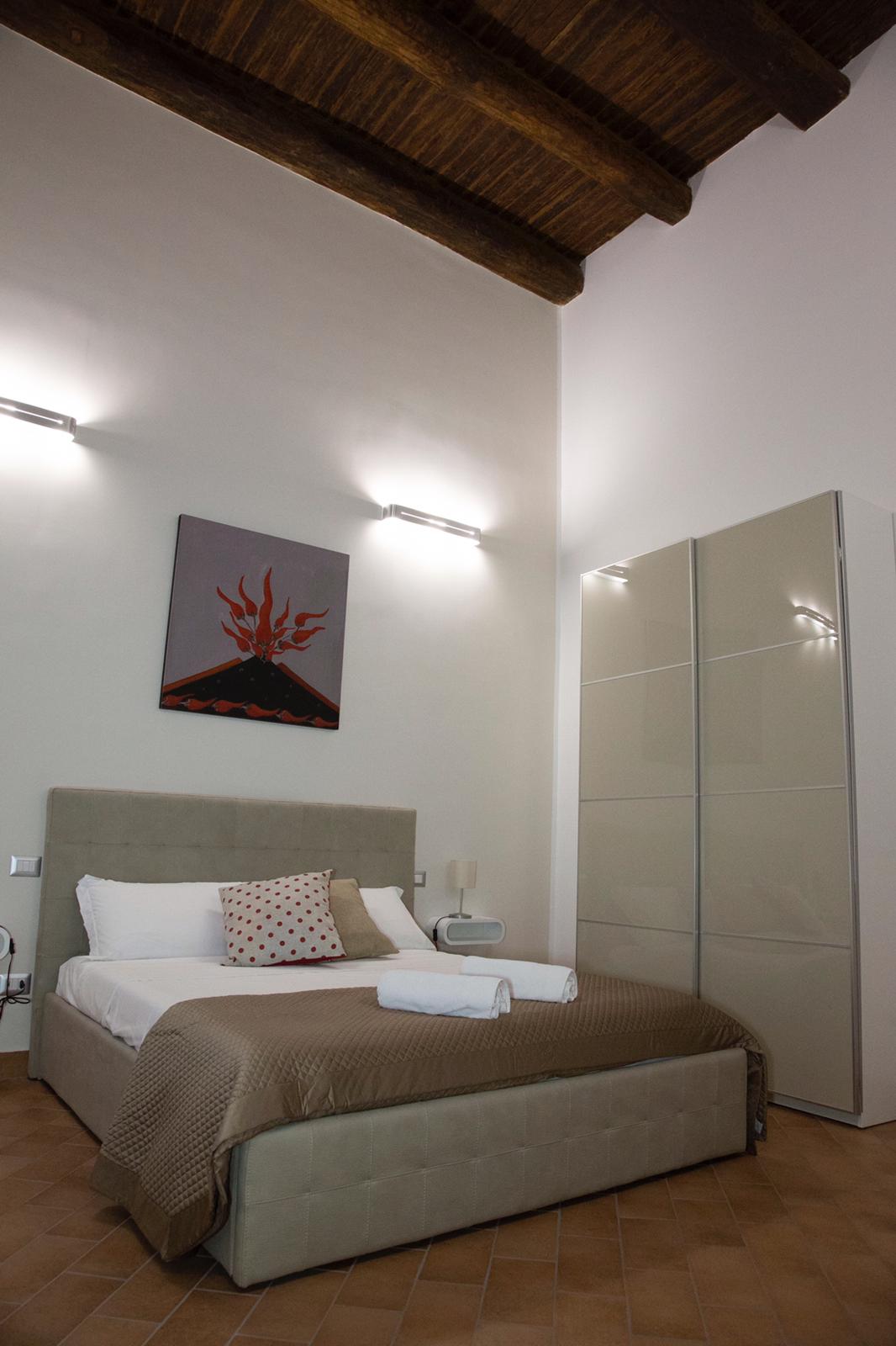 La stanza presenta travi in legno di castagno a vista, ed รจ dotata dei moderni comfort: letto matrimoniale, poltrona letto per un eventuale terzo ospite, Smart Tv 42” con abbonamento NETFLIX , frigo bar, macchina a cialde per il caffe espresso modello FROG, bollitore elettrico, climatizzatore, riscaldamento con termostato autonomo, connessione internet WIFI gratuita, cassaforte.